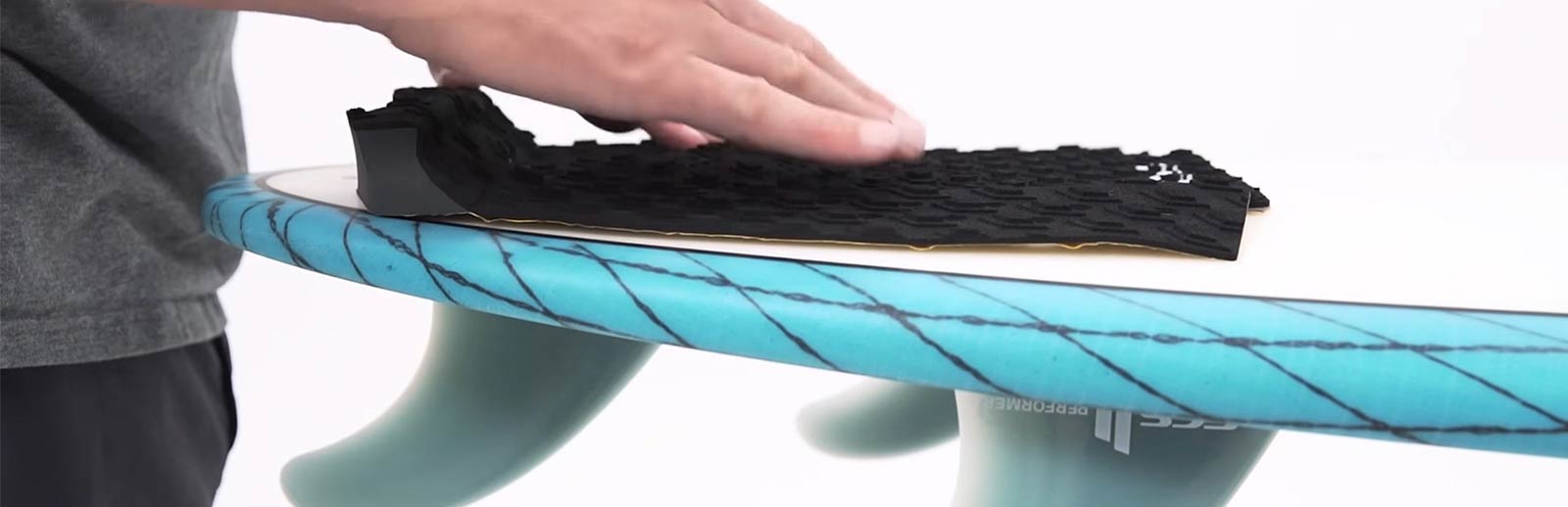 There’s no set rule for choosing a tail pad, its mainly personal preference, however it’s always a good idea to consider the width of your tail, and the tightness of the groove pattern. For this exercise we’re using a 3 piece pad…